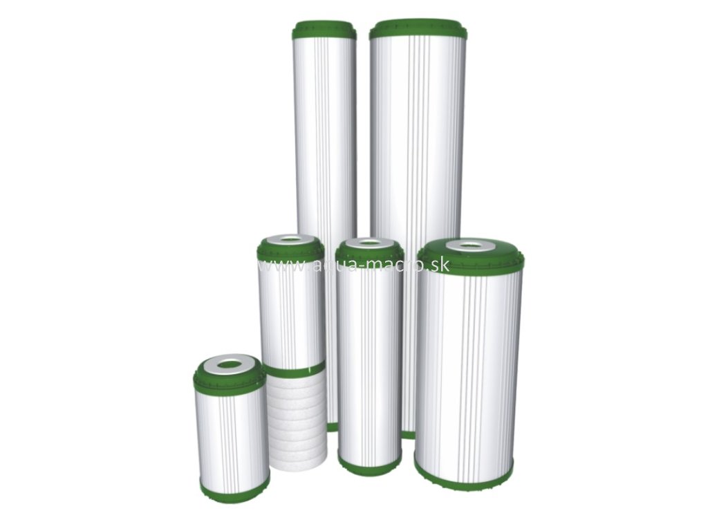 Vložka plnená kokosovou škrupinou s granulovaným aktívnym uhlíkom a KDF médiom, schválená NSF.